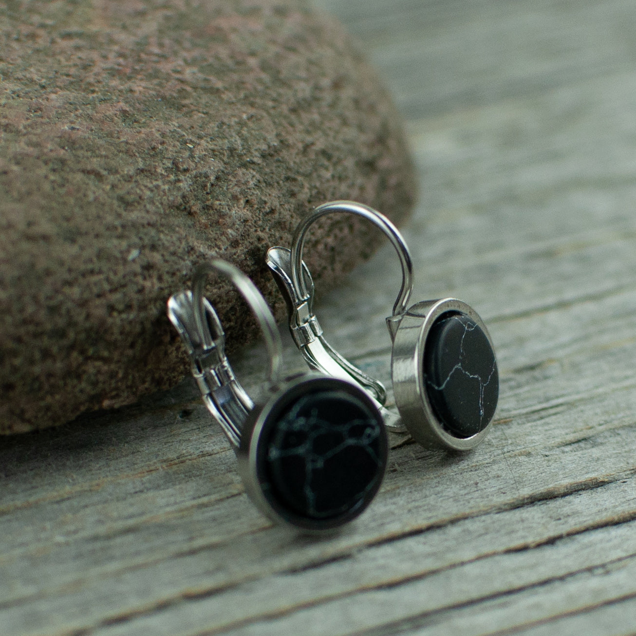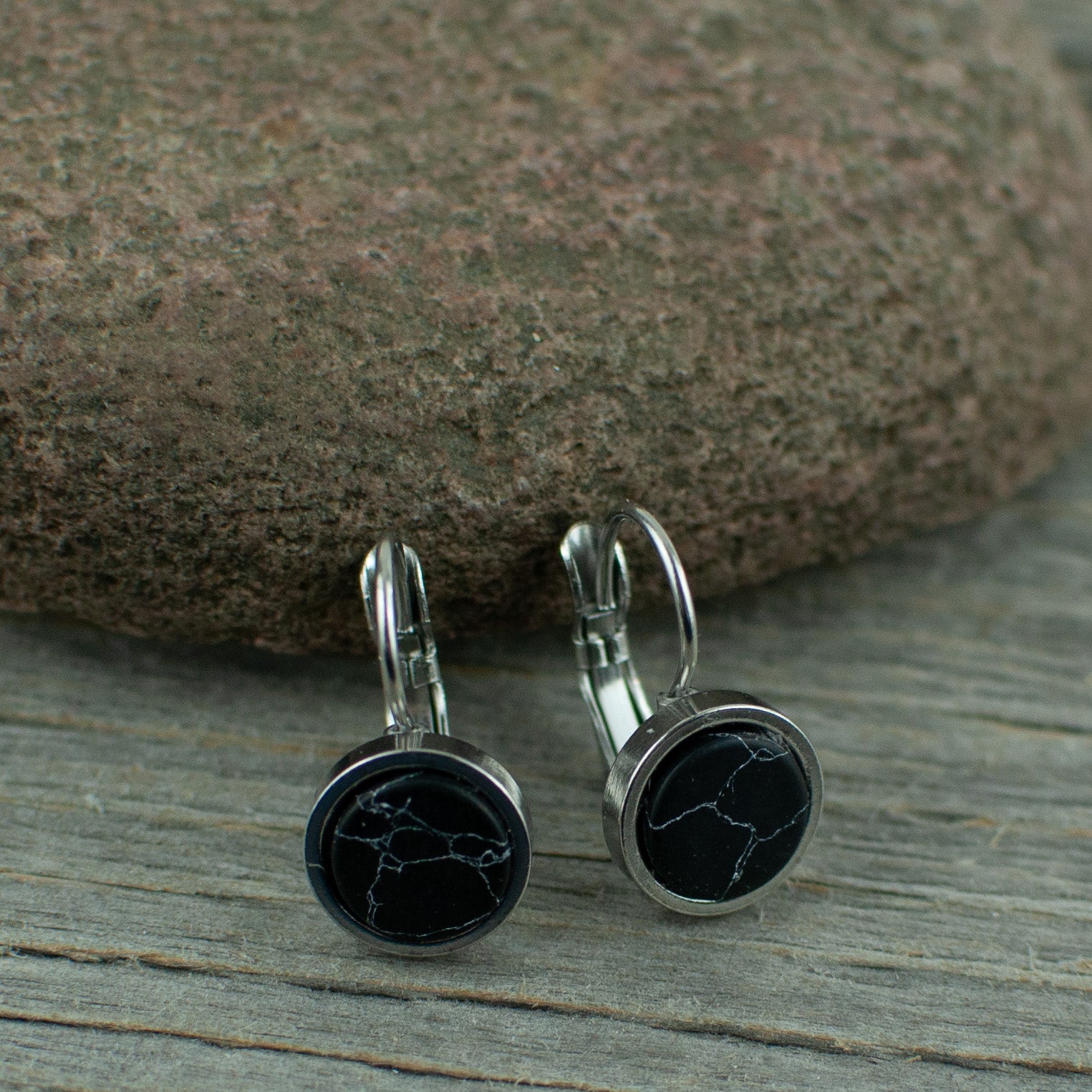 Black 10mm stainless steel French hook earrings