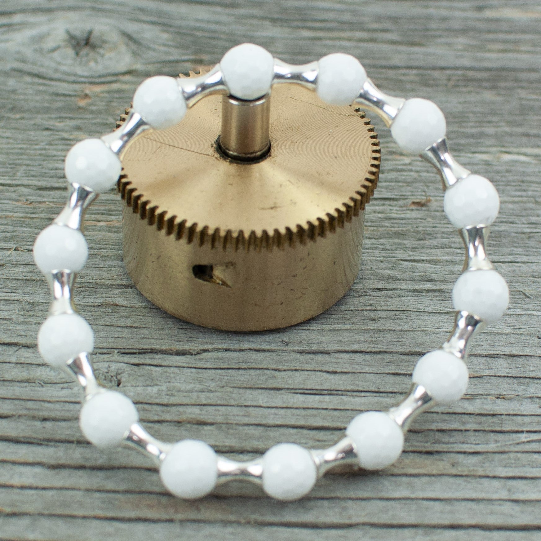 It is made from white agate and cone sterling beads. Beads are 6mm in size.